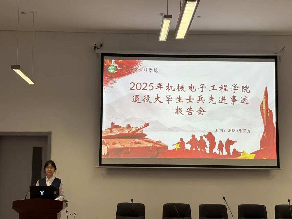 为充分发挥退役大学生士兵的榜样引领作用,激励广大青年学子坚定理想信念、矢志报国强能,机械电子工程学院于12月29日在理工东楼A101会议室开展退役大学生士兵先进事迹报告会。此次活动由我院学生会学习部承办。由退役士兵于航、李春阳为大家带来事迹分享。