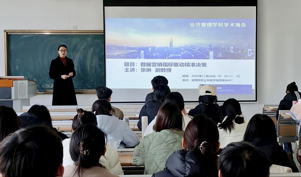 2025年11月28日上午,经济管理学院张琳副教授在淄公南楼B401教室进行了一场题为《数字营销指标驱动精准决策》的学术讲座。本次讲座聚焦数字营销领域指标体系的构建与应用,助力学生掌握数据驱动的营销决策能力。