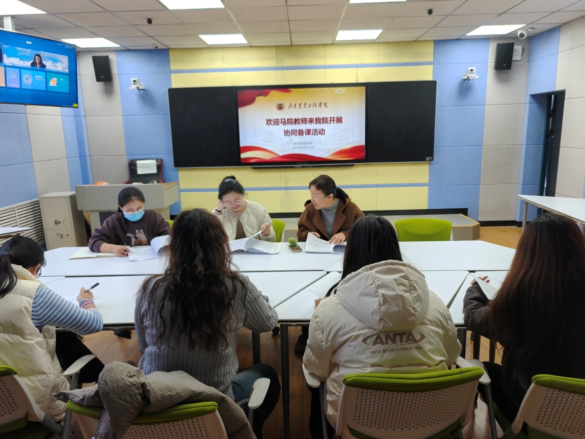 为进一步推动思想政治教育与专业知识传授深度融合,提升课程思政建设水平,根据《山东农业工程学院思政课教师与专业课教师协同备课实施方案》要求,2025年11月27日下午,经济管理学院与马克思主义学院成功举办了一场别开生面的思政课教师与专业课教师协同备课活动。此次活动旨在探索思政元素有机融入专业课程的有效路径,提升育人实效。马院教师刘丹丹、杜慧珍,经管学院专业课教师参与本次活动。