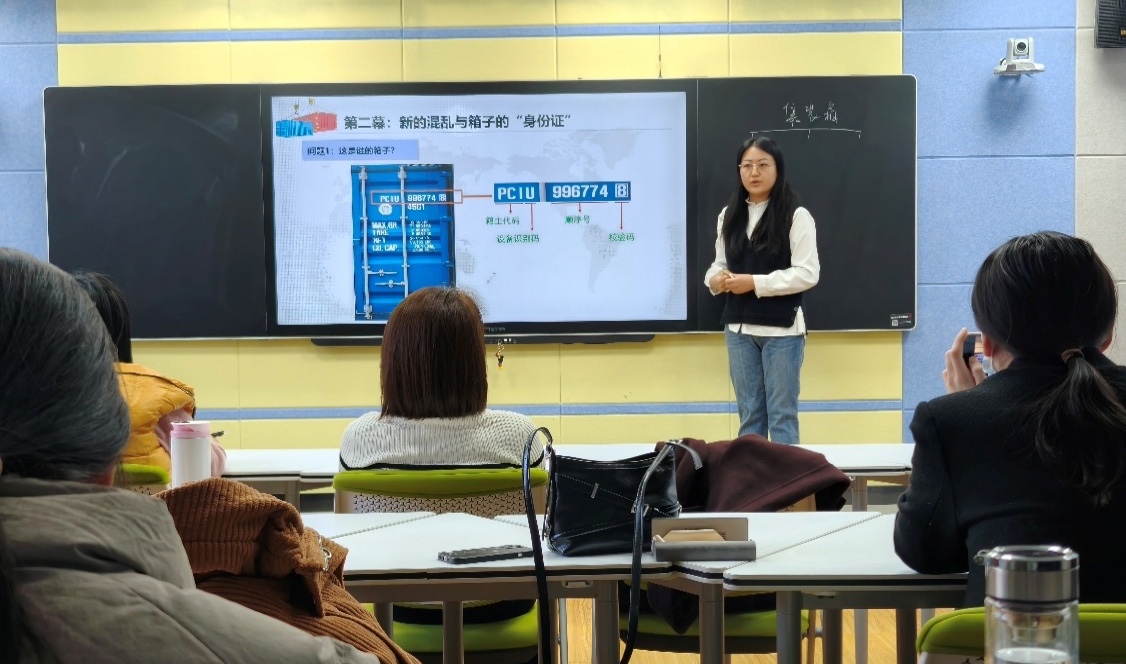 在教学展示环节,两位老师分别选取了其参赛课程中的一个教学节段进行现场演示,充分展现了不同学科背景下的教学智慧与课堂魅力。贾辉老师以《物流设施与设备》课程中的“集装箱”为题,以“集装箱如何重塑现代物流”为引,生动讲述了集装箱从萌芽、诞生到实现标准化、全球化的历史脉络。她通过精心设计的时间轴图示,将技术演进史与全球化进程巧妙勾连,深刻揭示了标准化对于提升物流效率、降低贸易成本的巨大意义。毕舒博老师则围绕《固定收益证券》中的“国债期货交易策略”,从学生熟悉的生活场景切入,巧妙借用“双十一”预购定金与尾款的关系以及提前购买电影票的例子,将“国债现货与期货价格关系”、“基差交易”等专业理论,转化为清晰易懂的逻辑链条。