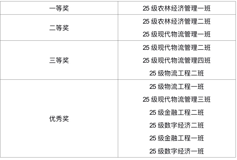附:经济管理学院2025年“河韵映山河,经管赋新章”新生合唱比赛获奖班级如下: