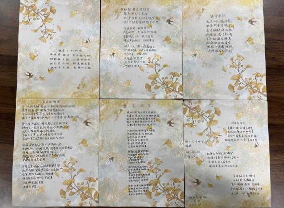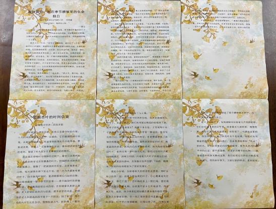 本次活动以秋日落叶为独特载体,设叶剪创作、诗签制作、秋日征文及诗歌创作四大主题。同学们用简易工具裁剪灵动的动物与静谧的风景,在落叶上书写成长与季节相关的文字制成专属诗签;通过征文与现场创作,聚焦校园秋景、以叶为喻抒发青春感悟与校园情怀。