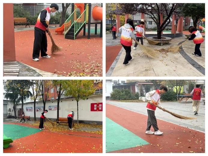 活动伊始,社区负责人向大家详细说明了本次活动的区域划分和注意事项,并强调了安全第一的原则。随后,志愿者们在社区工作人员的指导下,手持扫帚、垃圾袋、夹子等工具,迅速奔赴各自负责的区域,投入到紧张而有序的清扫工作中。清扫过程中,志愿者与社区工作人员分工明确、密切配合,共同清理落叶及杂物,有效美化了社区环境。通过大家的共同努力,成功为社区居民清扫出整洁的公共休憩区域,营造出更加优美宜居的生活环境。