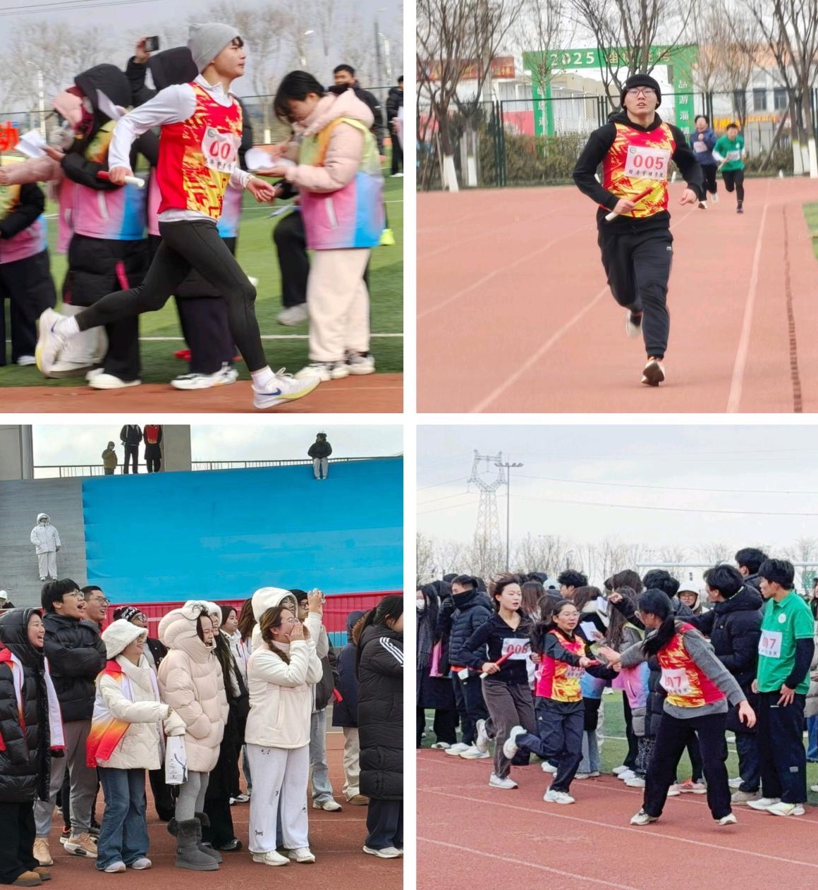 跑道旁,我院啦啦队高举标语、放声呐喊,加油助威声此起彼伏,比赛现场人声鼎沸、热血沸腾。赛道上,发令枪响,选手们如离弦之箭般冲出起跑线,矫健的身影在赛道上飞驰,瞬间点燃了全场的热情。运动健儿们不惧寒风,奋勇争先。即便汗水浸湿衣衫,脚步渐感沉重,他们依然目光坚定、热情似火,向着终点奋力迈进。每一次的精准递棒与默契接棒,都是在传递伙伴的信任与团队的希望。这份永不言弃的执着,正是“冬之火”精神的生动写照。随着最后一棒选手顺利冲线,比赛落下帷幕,经济管理学院代表队成功斩获第六名的优异成绩。