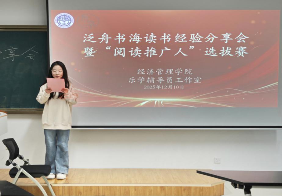 2025年11月,经济管理学院联合“乐学”辅导员工作室在文法西楼A412教室成功举办“泛舟书海”读书系列活动,本次活动的主题是“纸页藏诡影,文字露真章”,活动分为读书笔记评选和经验分享会两部分。