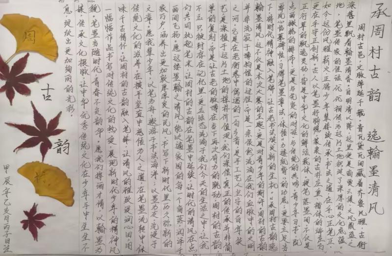 本次大赛以“承周村古韵 逸翰墨清风”为主题,面向经济管理学院全体学生征集作品。活动启动后,同学们踊跃参与、精心创作。中国画《富贵荣华》以牡丹盛景融合周村古韵,笔墨色彩尽显匠心;硬笔书法《承周村古韵 逸翰墨清风》字迹隽秀,书写出周村文化底蕴与青年思考;《周村予礼》则以行楷勾勒周村老街风貌,满含对地方传统文化的理解与传承。这些作品紧扣大赛主题,从艺术视角诠释了周村古韵与翰墨清风的内涵。