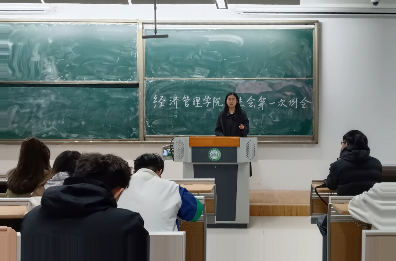 乘势而上开新局,凝心聚力启征程。2026年3月8日晚,经济管理学院在淄公南楼A203教室召开新学期第一次学生会例会,会议由学生会执行主席于文涵主持,全体学生会成员参与本次会议。