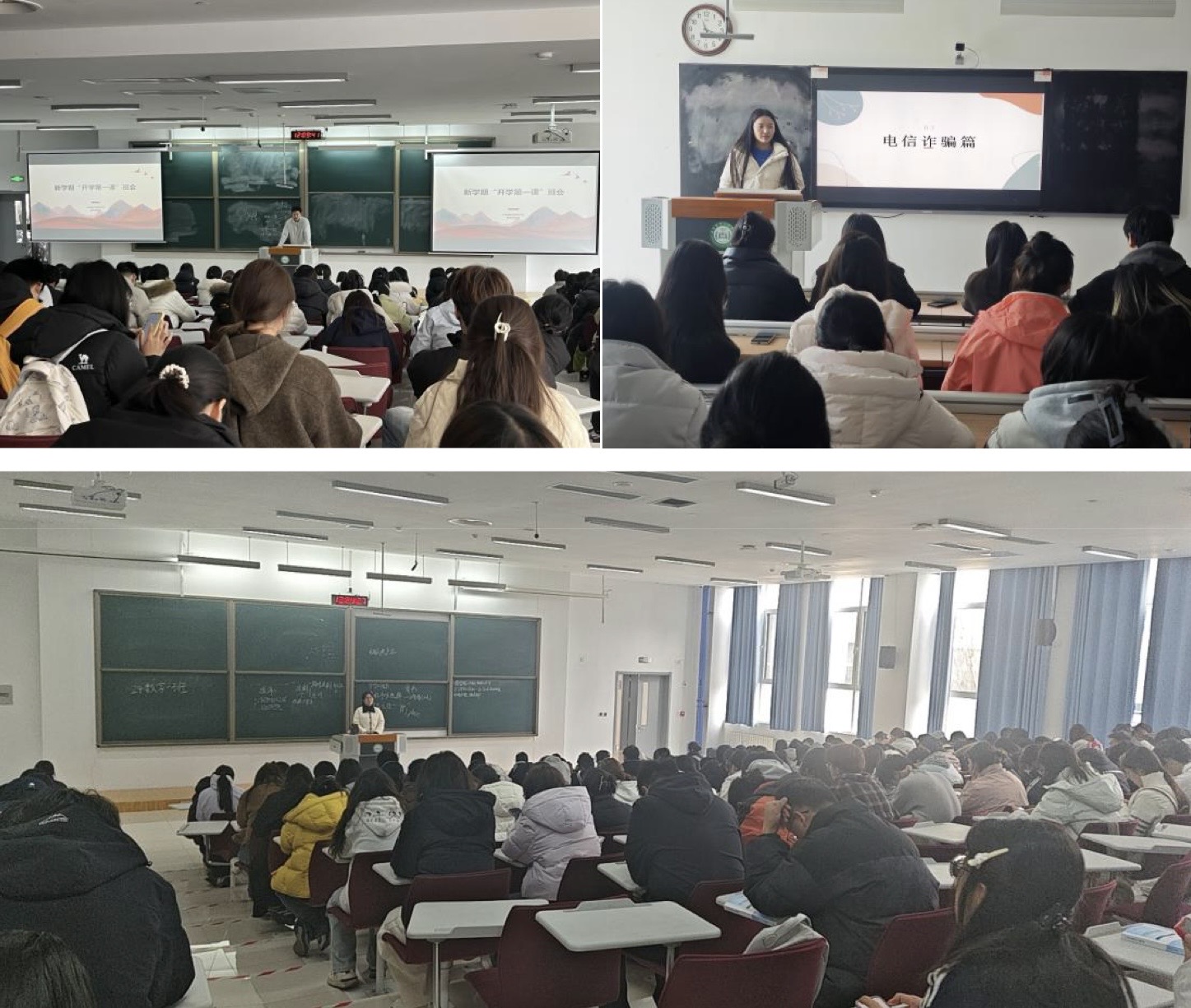 班会中,辅导员带领同学们深入学习习近平总书记关于安全生产和学校安全工作的重要论述,传达各级安全工作要求;结合河南方城“1・19”、江西新余“1・24”火灾事故及校园欺凌、校车安全等典型案例开展警示教育,引导学生深刻汲取教训;围绕消防安全、交通安全、食品安全、防欺凌、防电信网络诈骗、心理健康等内容进行专题讲解,明确安全纪律与责任义务。