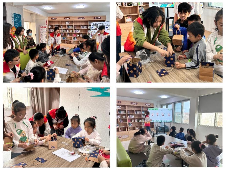 活动伊始,志愿者通过趣味PPT 为小朋友讲解垃圾分类知识,从四类垃圾的分类标准到常见物品的回收利用价值,娓娓道来并开展趣味问答,孩子们踊跃抢答,现场氛围热烈。随后的“变废为宝小手工”环节,志愿者带领大家利用废旧奶茶袋,通过裁剪、粘贴、装饰,制作出可爱抽纸盒,孩子们互相展示作品,成就感十足。