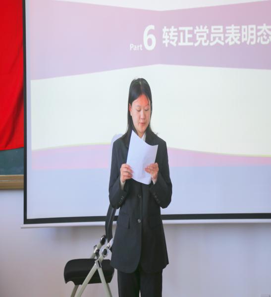 最后,党支部书记李娜同志作大会总结。她回顾了过去一年预备党员的成长历程,肯定了他们的进步与付出,并寄语全体学生党员以转正为新起点,持续加强理论学习,勇担时代责任,不断增强支部的凝聚力和战斗力,以实际行动为党旗增光添彩。