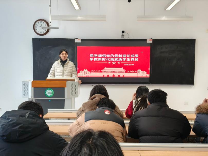 为推动党的最新理论成果入脑入心,强化学生党员的思想淬炼与身份意识,2025年12月19日,经济管理学院学生第二党支部于文法西楼A312教室召开“深学细悟党的最新理论成果,争做新时代高素质学生党员”主题党课,本次党课由学生第二党支部书记刘文娟主讲。