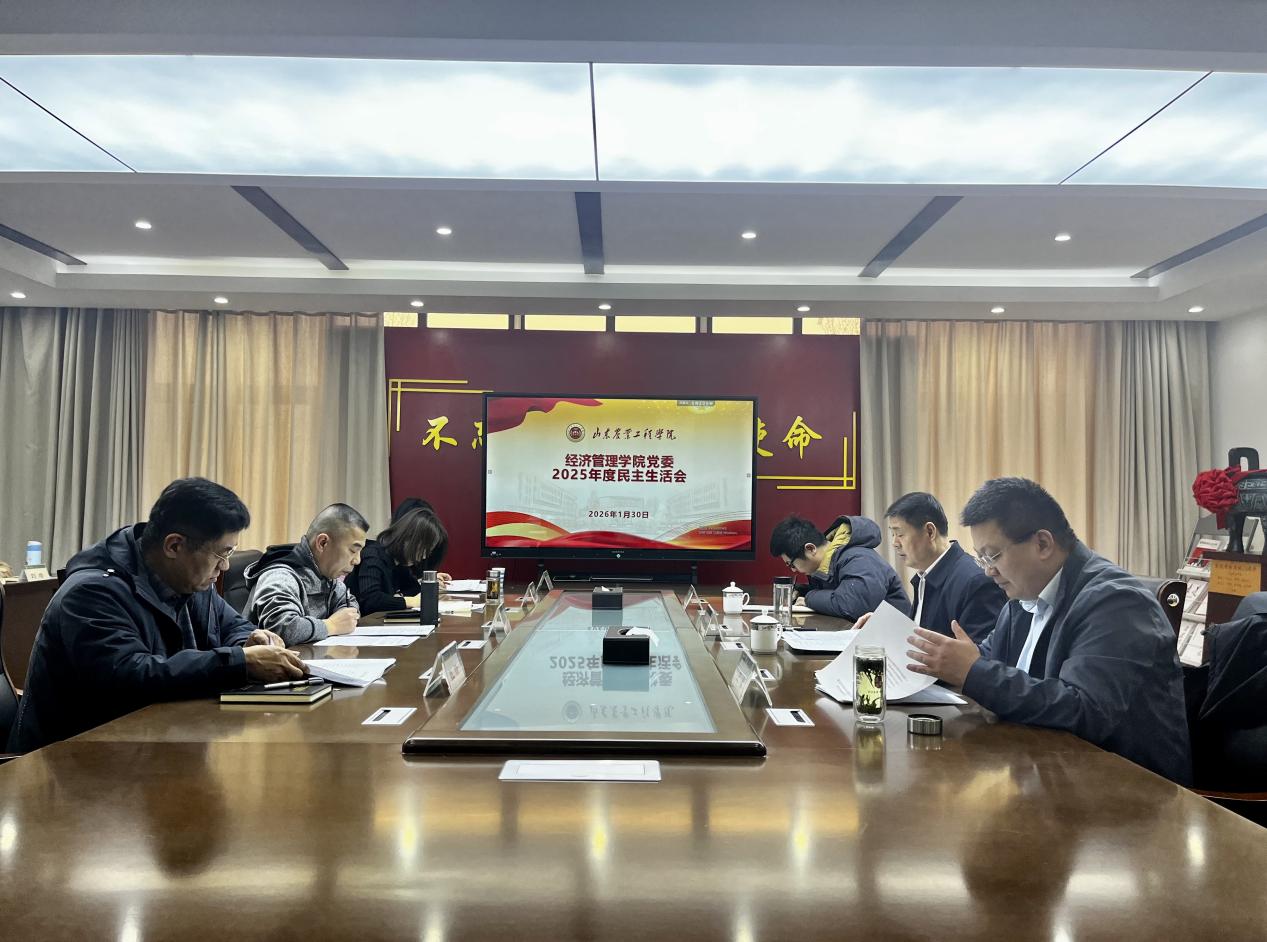 2026年1月30日上午,经济管理学院党委在济南第一会议室召开2025年度民主生活会。学校第七督导组到会指导,学院党委书记马勇主持会议,全体党委委员参加会议。