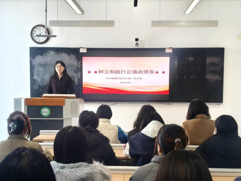 为深入学习贯彻新时代党的建设总要求,引导支部党员树立正确的权力观、政绩观、事业观。2026年3月12日,经济管理学院学生第二党支部于文法西楼A312教室召开政绩观学习教育启动大会。本次学习由学生第二党支部书记刘文娟主讲。