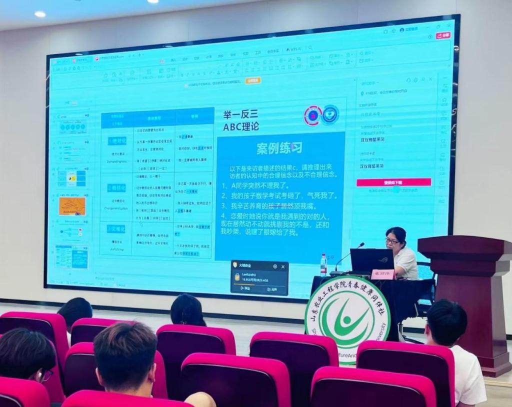 为深入贯彻落实学生心理健康教育工作要求,帮助学生掌握情绪管理与压力应对的有效方法,2025年5月29日,青春健康同伴社在淄博校区文法西楼A104报告厅组织开展“合理情绪疗法及应用”心理健康专题讲座。本次讲座由周村第三人民医院副主任护师崔丽萍主讲,帮助学生以科学方法驾驭压力,用阳光心态赋能人生。