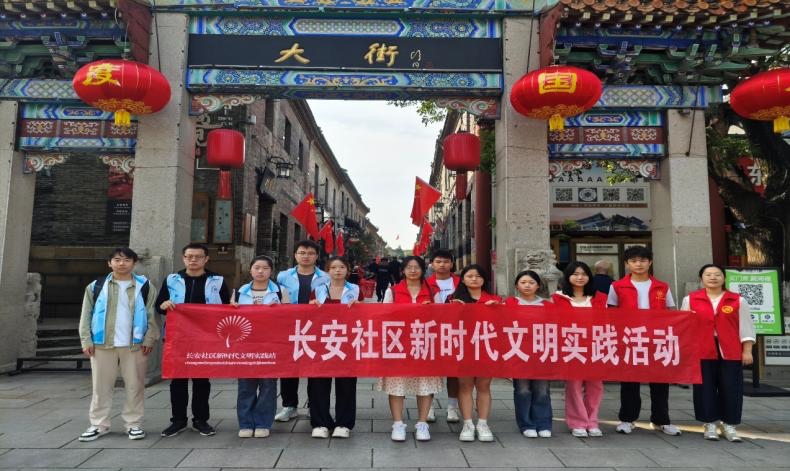 国庆假期,山东农业工程学院经济管理学院青年志愿者协会组织志愿者身着统一志愿服,走进周村古商城,以志愿行动为祖国庆生,彰显青年担当,用青春身影为古商城增添了一抹鲜亮的志愿色彩。