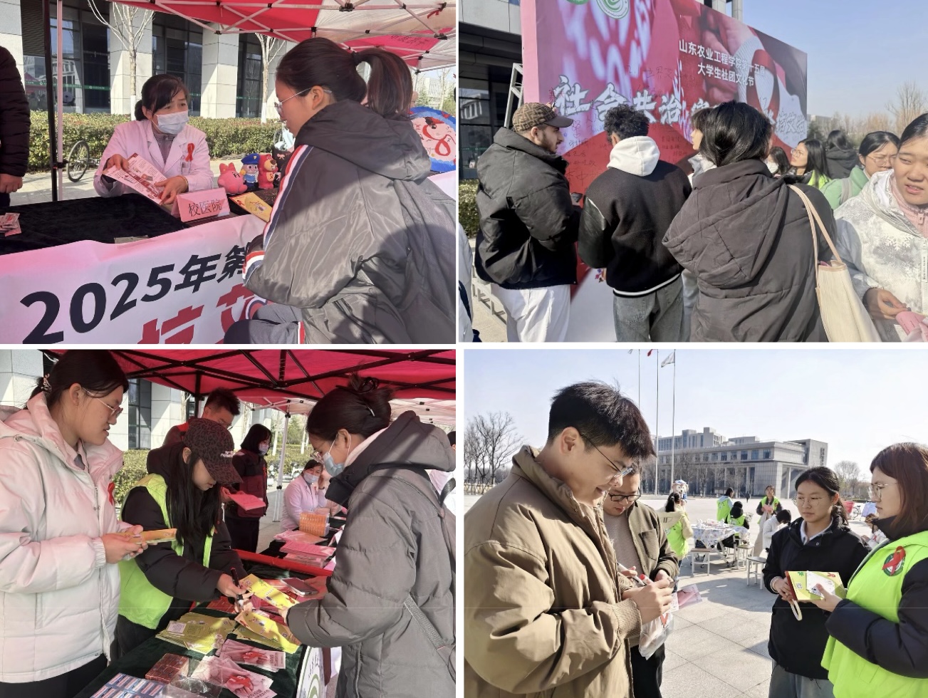 本次活动整合校内外优质资源,通过现场宣传、互动游戏、知识竞赛等多种形式,推动防艾教育走深走实,取得了显著成效。淄博市周村区疾病预防控制中心、区妇联的专家与工作人员到现场宣讲,校医院医生提供现场义诊与健康咨询服务,助力青年学生筑牢认知基础。现场还特别设置了艾滋病与流感免费咨询检测点,由属地医院专业人员提供检测与指导,倡导“主动检测、知艾防艾”的健康责任意识。
