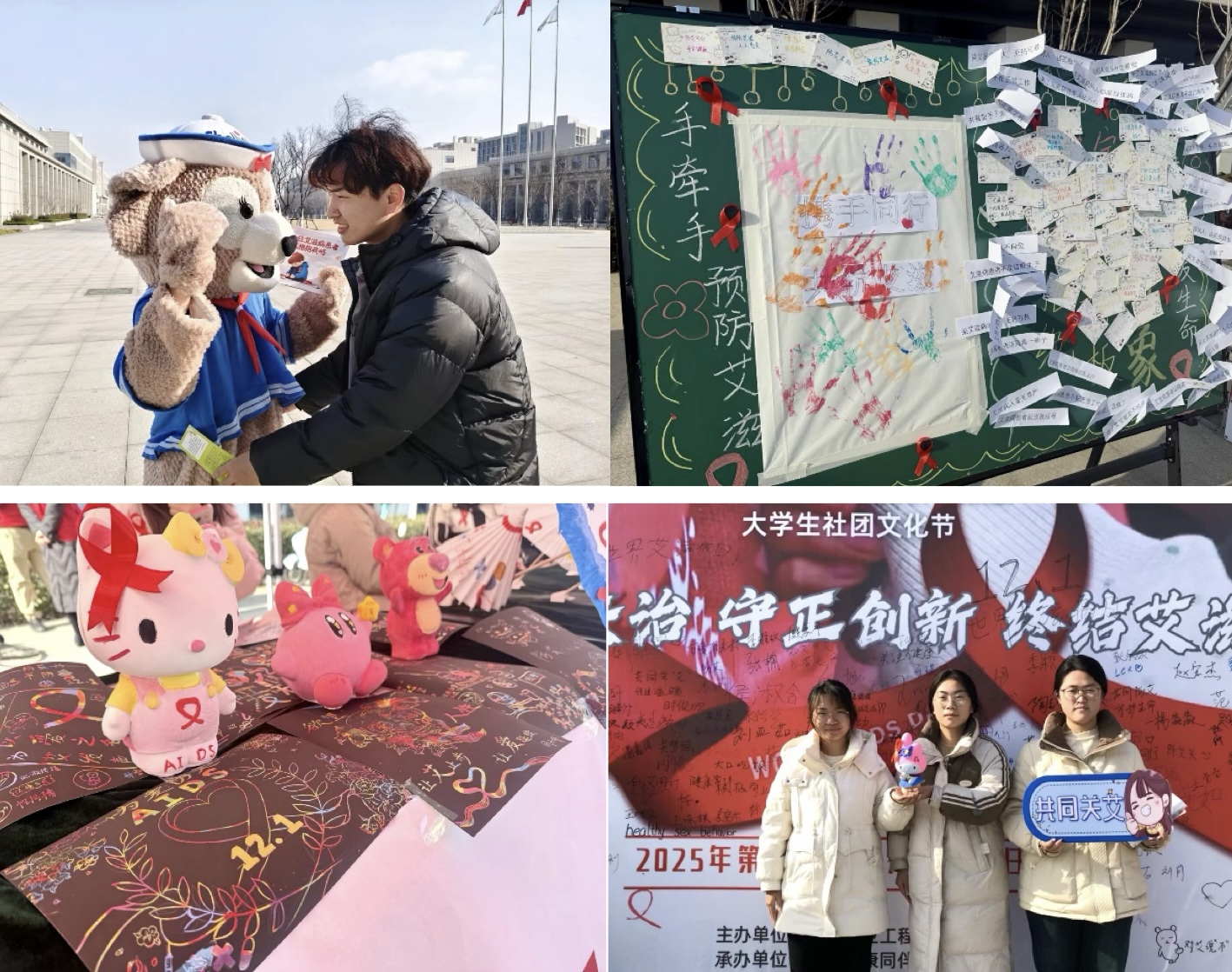 活动现场设置了来自多个学院优秀防艾主题海报展览,组织了防艾知识有奖竞答、“合力共抗艾滋”主题签名、“爱的抱抱”互动体验(模拟与感染者拥抱)、“撕掉标签”等系列活动。防艾志愿者积极为师生佩戴红丝带,发放宣传手册,通过“红丝带寄语”引导学生用文字凝聚起共抗艾滋的共识,建立零歧视、零艾滋的校园环境,将知识传授、技能培训与情感教育融为一体,让防护能力成为青年们受益的“必修课”。