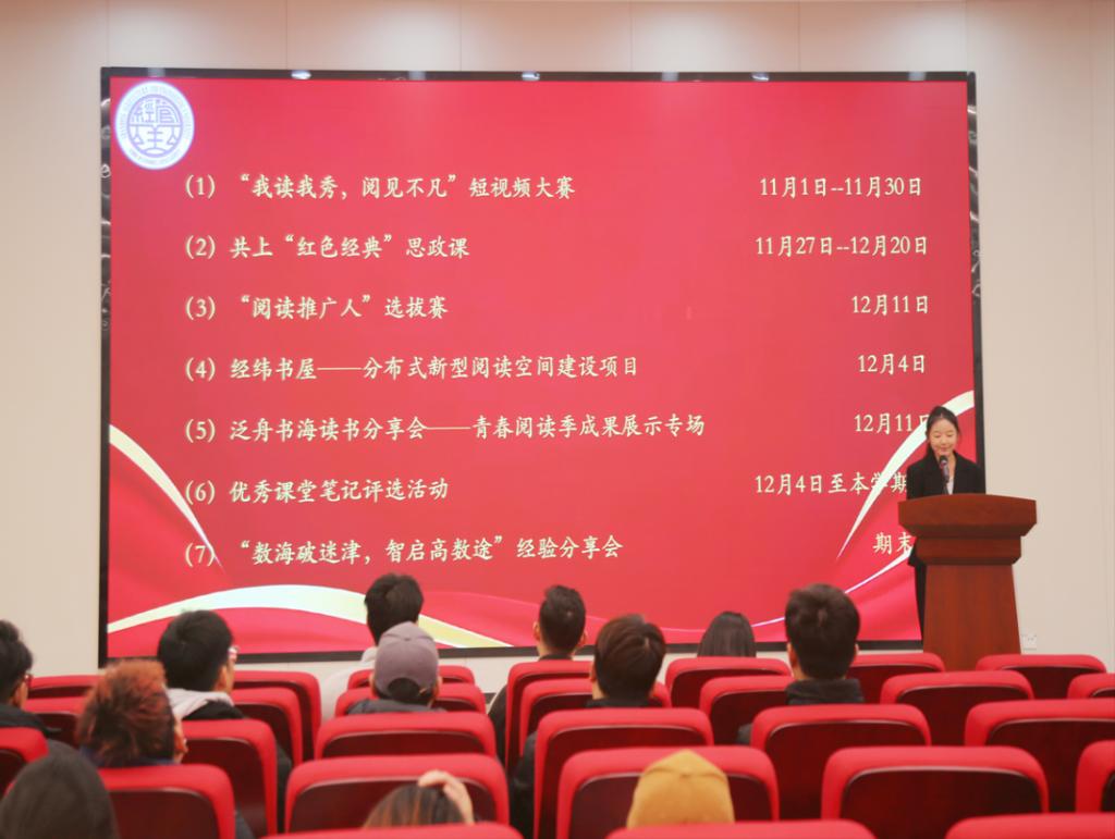 仪式伊始,全体人员起立奏唱国歌,激昂的旋律凝聚起师生共识,为学风建设月拉开庄重序幕。王永瑞老师在致辞中阐释了学风建设的重要意义,为学风建设月系列活动的开展指明了方向。本次学风建设月共推出七项核心活动:“我读我秀,阅见不凡”短视频大赛,共上“红色经典”思政课,“阅读推广人”选拔赛,经纬书屋—分布式新型阅读空间建设项目,泛舟书海读书分享会,优秀课堂笔记评选活动,“数海破迷津,智启高数途”经验分享会。