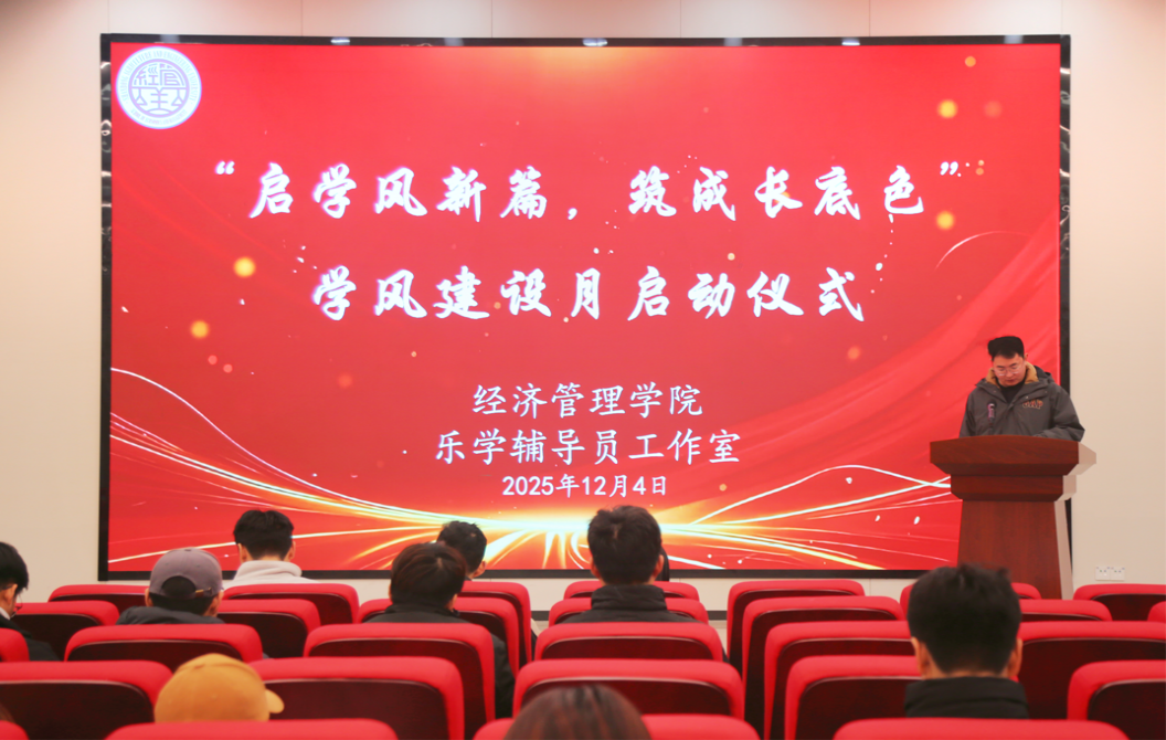 书香满校园,学风正当时。2025年12月4日,经济管理学院乐学辅导员工作室在文法西楼A104报告厅隆重举行“启学风新篇,筑成长底色”学风建设月启动仪式。经济管理学院思想政治辅导员曹奇、王永瑞、王洁、张扬出席了本次会议,现场师生共同开启学风建设新征程。