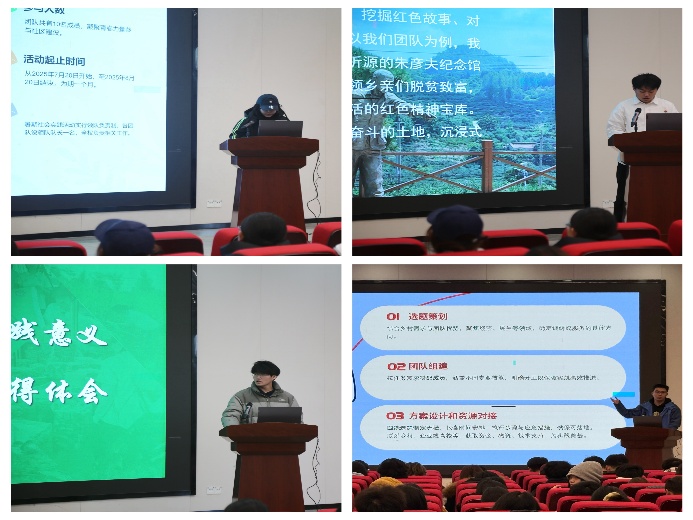 分享会上,来自各优秀实践团队的代表依次登台进行分享,他们结合自身实践经历,生动讲述了在基层一线开展红色宣讲、助农服务、暑期支教等实践活动的过程,分享了实践中直面问题、解决难题的思考感悟,以及从课堂走向田野、从理论走向实践的成长收获,全方位展现出我院学子扎根基层、服务社会的责任与担当。