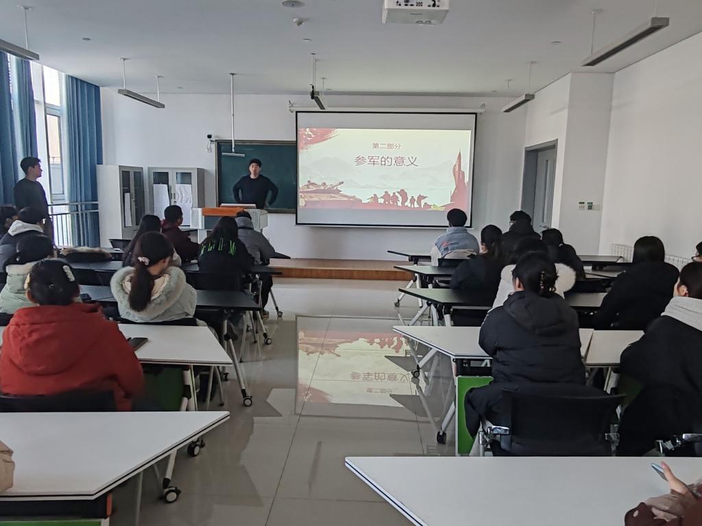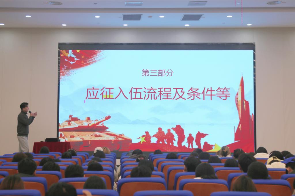 为深入贯彻落实习近平总书记强军思想,扎实推进国防后备力量建设,进一步激发青年学子参军报国的热血豪情,经济管理学院于2025年12月29日,在文法东楼A104报告厅开展征兵主题宣讲活动。活动特邀苑靖凯、赵诚森、陈丛丛三名优秀退役复学大学生担任宣讲员,经济管理学院思想政治辅导员张扬出席并主持本次活动。