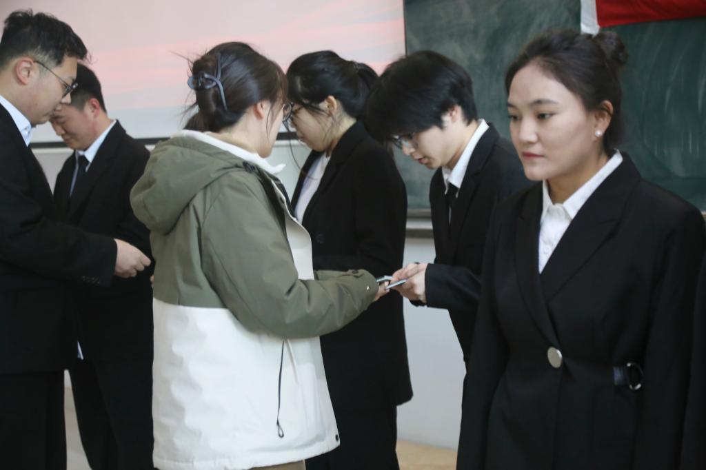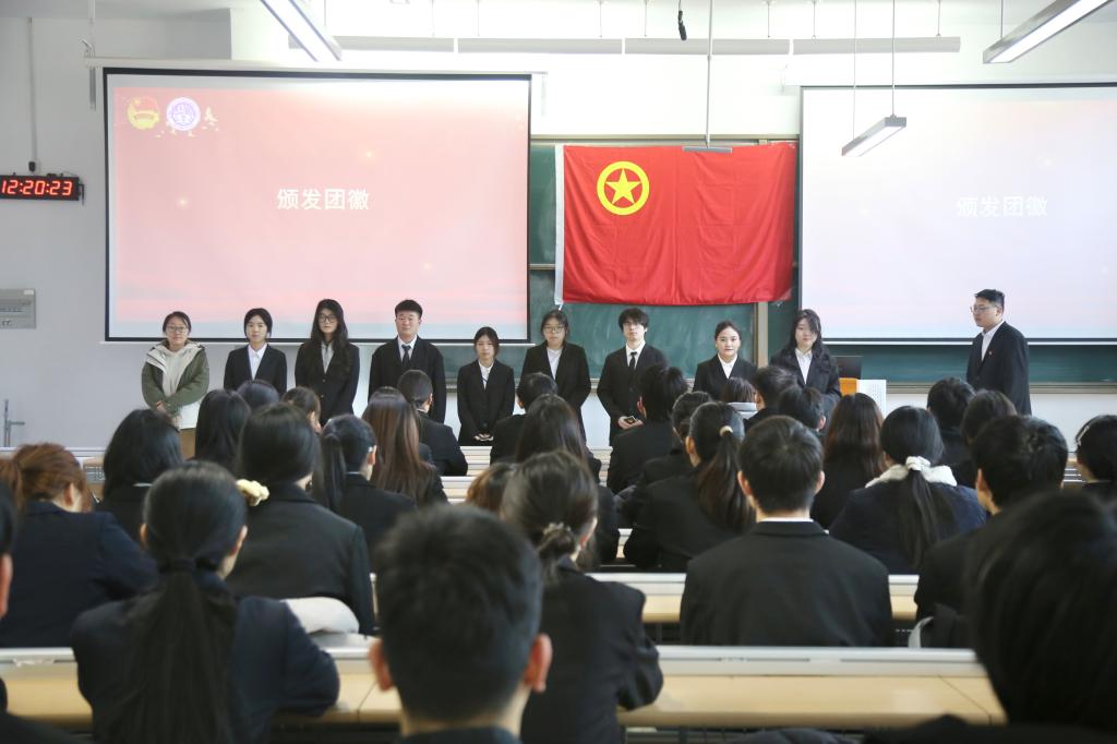 仪式上,学生团干于昊冉宣读了2025年下半年新发展团员名单,我院思想政治辅导员侯沁菲为新团员们颁发团员证、佩戴团徽。