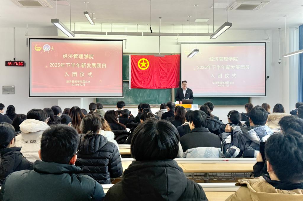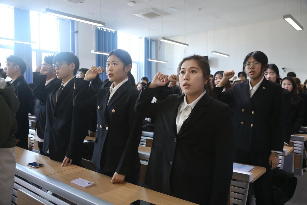 为深化青年团员的思想教育,夯实共青团组织建设,激发青年学生的责任意识与使命担当,2025年12月31日,我院于淄博校区公共教学南楼A101教室举行2025年下半年新发展团员入团仪式。我院思想政治辅导员李娜、侯沁菲以及2025年下半年全体新发展团员参与此次仪式。