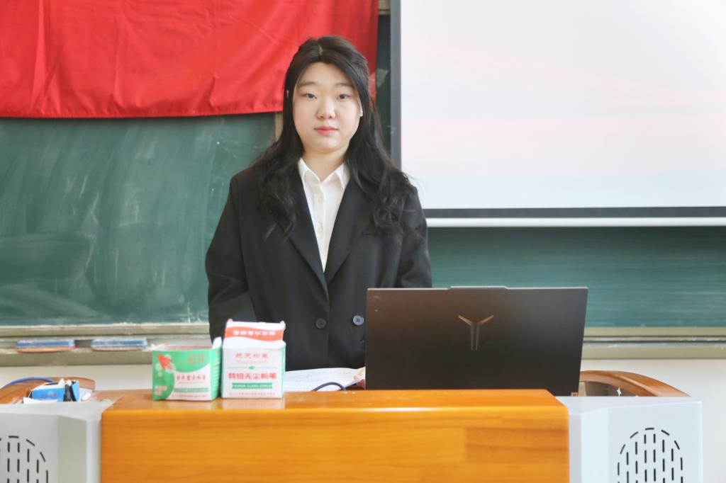 宣誓完毕后,新发展团员代表孙瑀甜上台发言,诉说了成为团员的喜悦,也立下了努力学习、践行团员义务的承诺。
