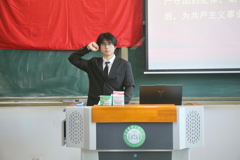 接着,在领誓人郭文浩的带领下,新团员们面向团旗庄严宣誓,誓言铿锵有力,既表达了对共青团的忠诚,也体现出青年一代勇担使命的决心。