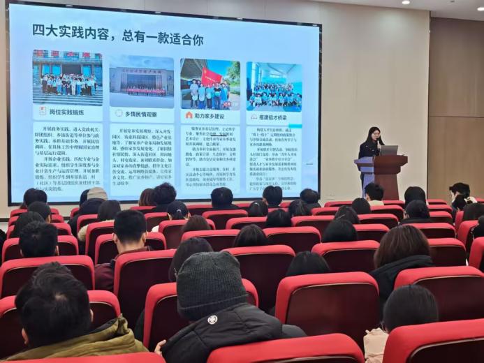 本次大会以假期社会实践与志愿服务工作为核心开展动员部署,旨在鼓励全院学子充分利用寒假时间深入社会基层、践行志愿服务精神,在实践历练中增长才干、提升素养。会上,刘文娟老师详细解读了本年度“返家乡”社会实践与志愿服务板块的内容,介绍了各类社区服务、乡村振兴、公益志愿等实践岗位的具体信息及报名流程等相关事项。参会同学反响热烈,围绕项目选择、安全保障、时间安排等具体问题与老师进行了深入交流,现场气氛活跃。