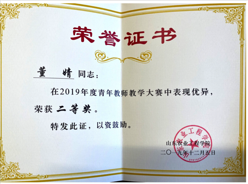 2019年度山东农业工程学院青年教师教学大赛二等奖