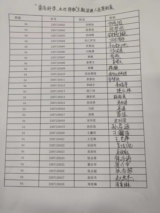 20级农林经济管理一班团支部、20级农林经济管理二班团支部、21级金融工程一班团支部等24个团支部组织同学们开展反邪教知识科普小组讨论,同学们积极发言,深入探讨了邪教的本质、危害及如何防范等问题,并分享了自己对反邪教的认识和看法。同时也对什么是邪教、邪教的危害、怎样识别邪教、如何防范邪教等知识等进行一系列问题进行讨论分析,使同学们树立了“远离邪教、崇尚科学”意识。同学们纷纷表示,要坚决反对邪教,远离不良诱惑,用科学素养武装思想,筑牢思想防线珍惜生命,为构建和谐社会贡献自己的力量。通过讨论和分享交流,同学们更加深入地了解了反邪教的重要性,也更加清晰地认识到邪教的危害性。