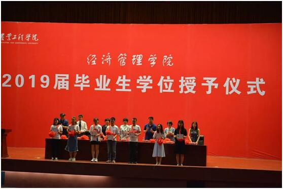 在学位授予仪式上经济管理学院学位委员会委员颜素杰、李百秀、沙鸣、刘建廷教授为毕业生颁发学位证书。微笑、握手、拨穗、授证、合影……每一个瞬间都是学子们成长中的难忘时刻。最后,全体毕业生起立向台上的各位导师行谢师礼,经济管理学院2019届毕业生学位授予仪式暨颁奖典礼在《欢送进行曲》的音乐声中圆满结束。