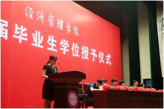 典礼在庄严的国歌声中拉开帷幕,经济管理学院院长李百秀首先致辞,李院长回顾了2019届学生的求学历程,总结了本届学生取得的骄人成绩,并从坚守底线、终生学习、与人为善三个方面对毕业生提出了殷切希望。