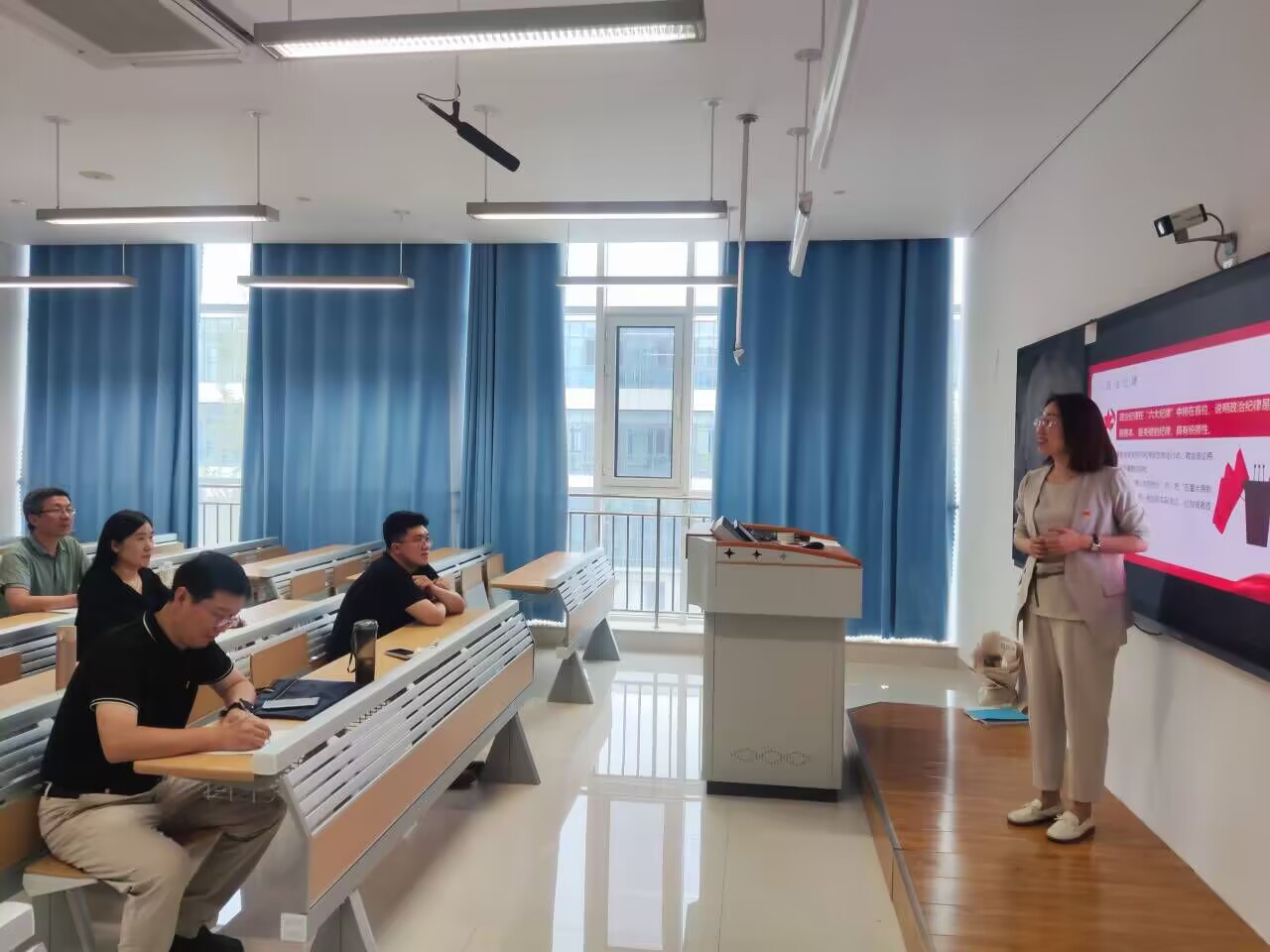 本次党课教育活动,曲文俏副院长从党的历史、党的纪律建设、新时代党的建设总要求等方面进行了深入浅出的讲解。党课上,曲院长强调,纪律是党的生命线,严明的纪律是党的坚强保证。党员教师要深刻认识纪律建设的重要性,自觉做到以下几点: