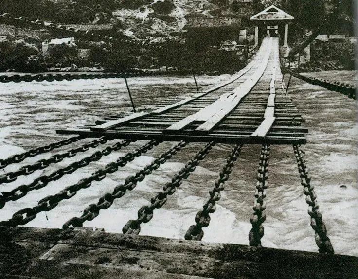 1935年5月29日,中央红军左纵队先头部队在泸定桥西头发起夺桥战斗,胜利抢占大桥。图为泸定桥。