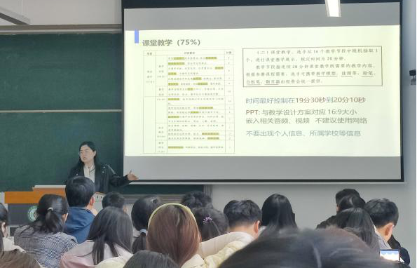 李娜老师以货币互换”为题,通过视频引入、课前预测、概念讲解、案例运用、课堂小结等环节充分展示了一堂优质的课堂教学节段,结合自身备赛参赛体会,分享了备赛参赛需要注意的关键商玉娇老师从比赛概况与规则解读、评分解析及备赛策略、案例剖析和参赛感悟与体会四个方面分享了第十一届青教赛宝贵参赛经验,并通过课堂导入、新知探究、设计应用和总结拓展等方面对“建筑抗震设防”进行了精彩展示。两位老师PPT制作精美,图文并茂,内容精彩纷呈,充分展现出高水平的课程教学,参加观摩的老师表示收获良多