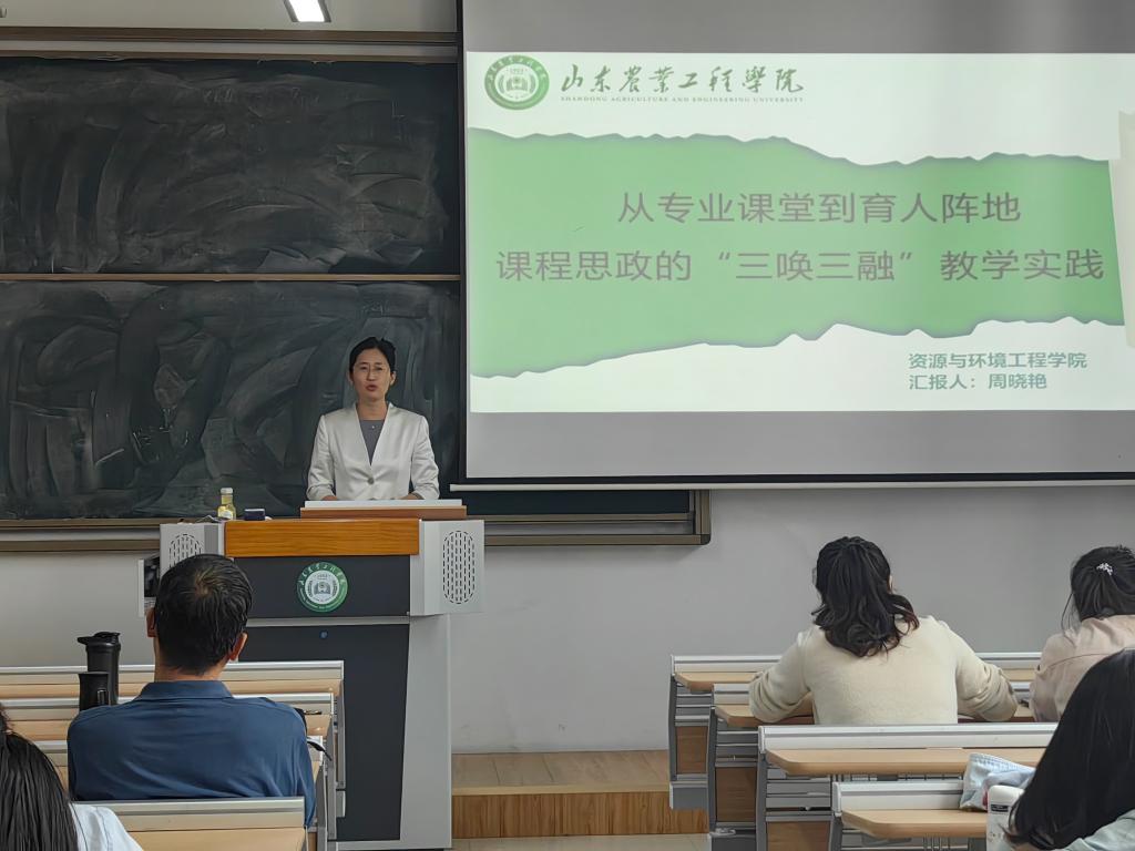讲座中,周晓艳副教授结合多年教学经验,系统阐释了课程思政“三融三唤”的核心内涵。她提出,“三融”即知识体系与价值引领相融、专业能力与家国情怀相融、教学过程与育人目标相融;“三唤”则强调通过情境创设唤醒学生情感共鸣、案例剖析唤醒责任担当、实践创新唤醒使命自觉。通过生动的教学案例,她展示了如何将思政元素自然融入专业课堂,使专业教学成为培根铸魂、启智润心的育人阵地。现场还以环境工程专业为例,剖析了课程设计、课堂互动及评价反馈中思政教育的具体实施路径,为教师提供了可借鉴的实践范式。