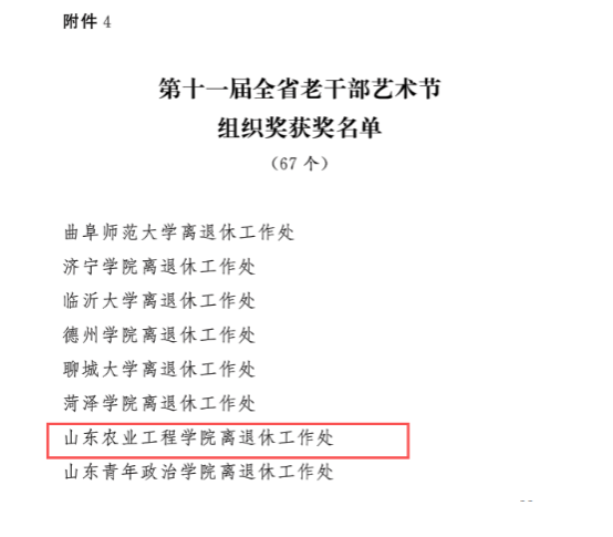 为纪念中国人民抗日战争暨世界反法西斯战争胜利80 周年,省委老干部局、省文学艺术界联合会、省文化和旅游 厅联合主办了第十一届全省老干部艺术节。我校离退休工作处积极组织参与,报送的文艺节目、书法作品均展现出高水平艺术素养并荣获集体银奖和优秀组织奖。