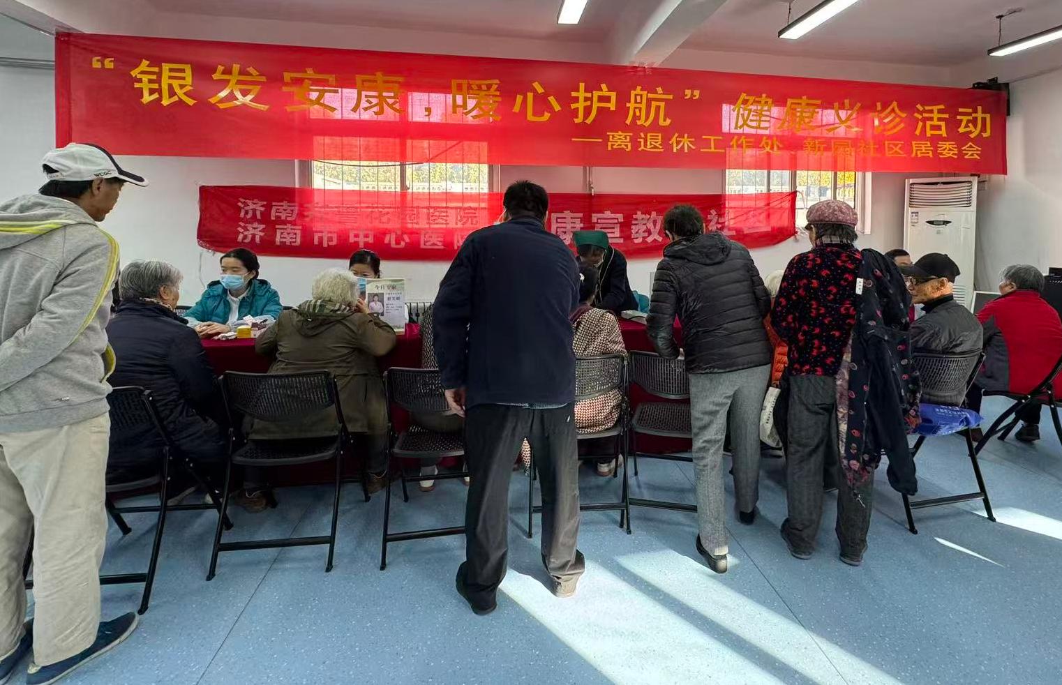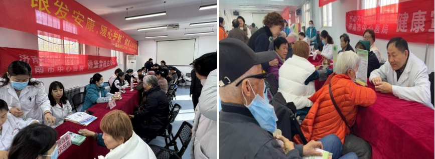 活动特别邀请济南市中心医院、齐鲁花园医院的心血管科、老年医学科、内分泌科、骨科、妇科等专家,通过健康公益宣讲与义诊相结合的方式,为老同志提供了健康咨询、耳穴压豆、康复治疗、血压测量、血糖检测等服务。医护工作人员还向大家发放了健康科普手册,为大家普及老年常见病防治、保健养生方式等内容。