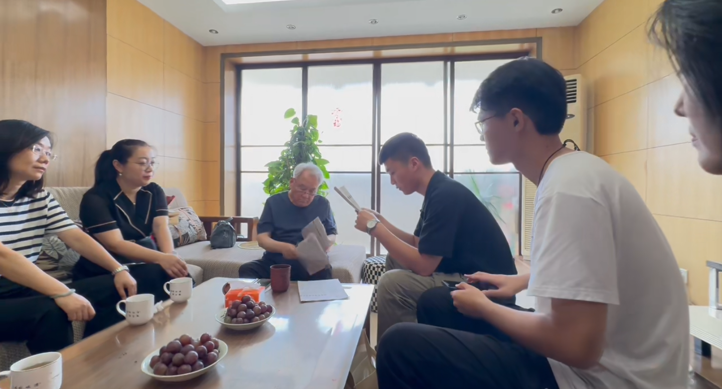 实践团成员走进退休老干部马连孝家中,与老人进行面对面交流,一场跨越六十载的时空对话生动展开。马老以校史为轴,向围坐的师生再现了学校“挖沟渠耕农场”的创业历程,用鲜活案例诠释“厚德、自强”校训的实践内涵。同学们聚精会神地倾听,不时点头,深受启发。当问及马老入党初心时,老人家坚定的一句“保家卫国!”深深触动了在场的师生。校史传承与党史教育深度融合,动人的话语和感人的故事交织,滋养着青年一代传承红色基因、担当时代使命的决心,激励青年将个人理想融入民族复兴伟业。