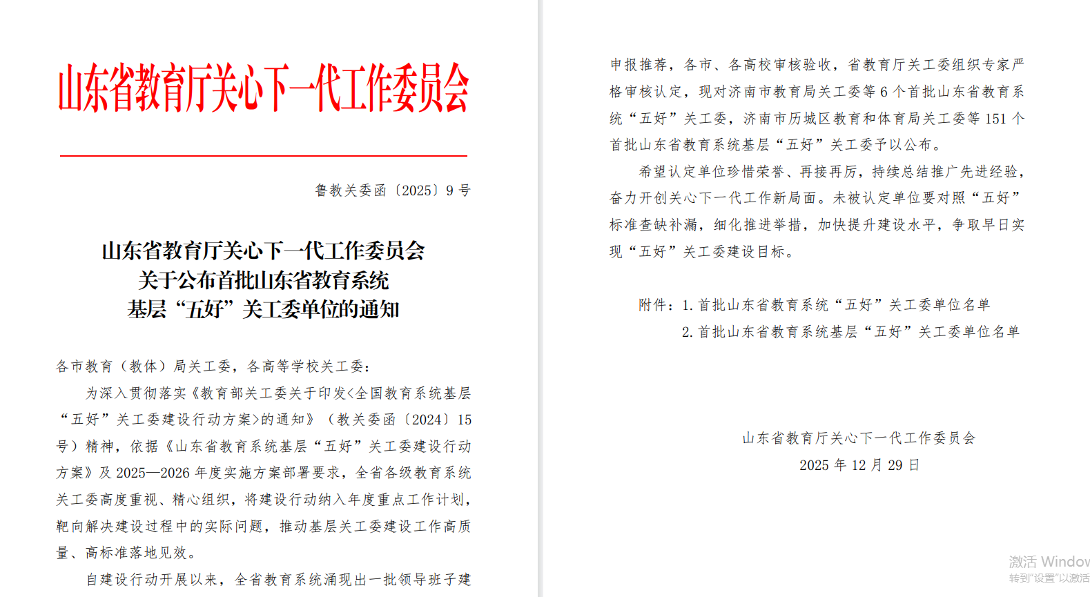 近日,山东省教育厅关心下一代工作委员会公布了基层“五好”关工委评选结果,我校机械电子工程学院关工委与资源与环境工程学院关工委荣获首批山东省教育系统基层“五好”关工委荣誉称号。