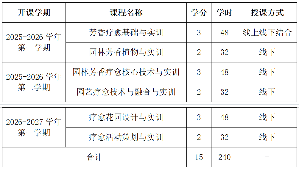 主讲课程:《风景园林建筑结构与构造》;在本微专业中主讲《疗愈活动策划与实训》。