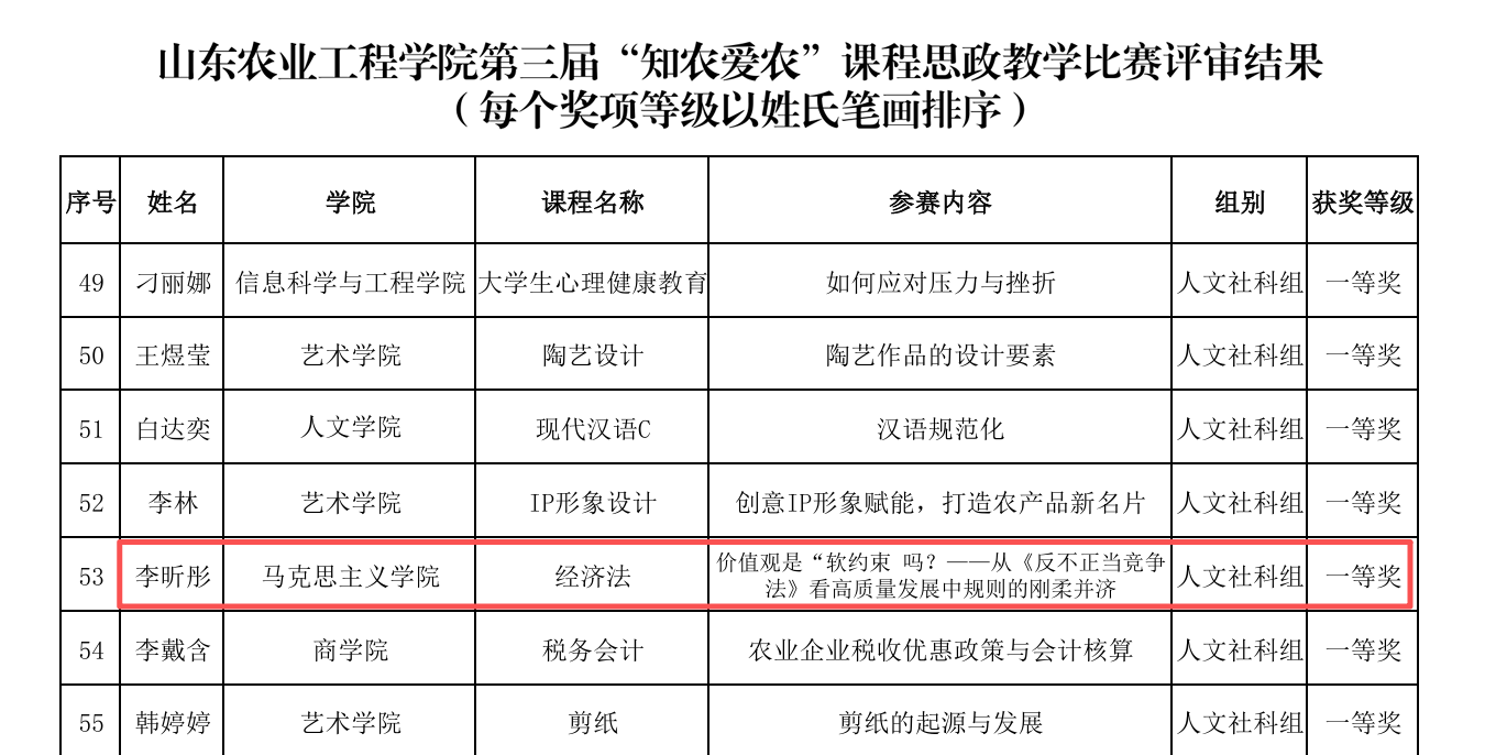此次获奖既是对我院教师教学工作的认可,更是对课程思政建设的激励。未来,我院将坚持思政课程与课程思政同向同行,持续深化思政课教学改革,全面落实立德树人根本任务,不断培养更多可堪大用、能担重任的栋梁之才。