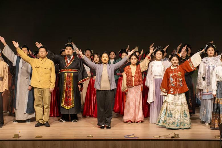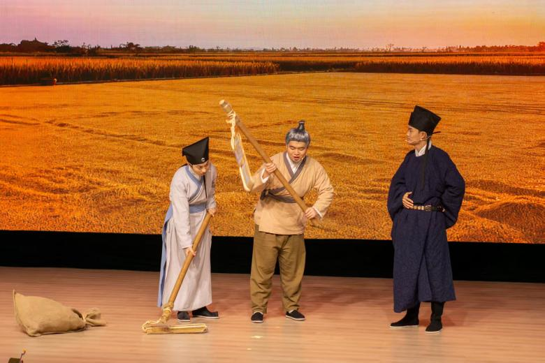 舞台之上,“惊蛰闻雷起耕”“芒种忙收忙种”“霜降登禾归仓”“大寒围炉话年”的四季农耕图景依次铺展。师生们以诗词朗诵、情景演绎、歌舞融合等形式,再现古人“知农时、顺农情”的生产智慧,传递“一分耕耘一分收获”的人生哲理。从春耕播种的希冀到秋收满仓的喜悦,从先民顺应节气的生存之道到现代新农人的责任担当,一个个农耕故事串联起中华文明脉络,让观众沉浸式感受农耕文明的深厚底蕴。