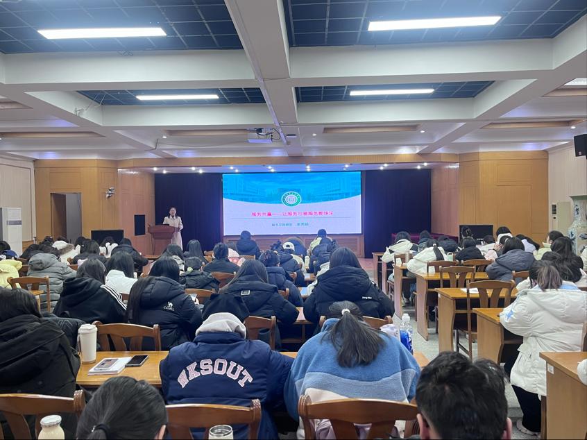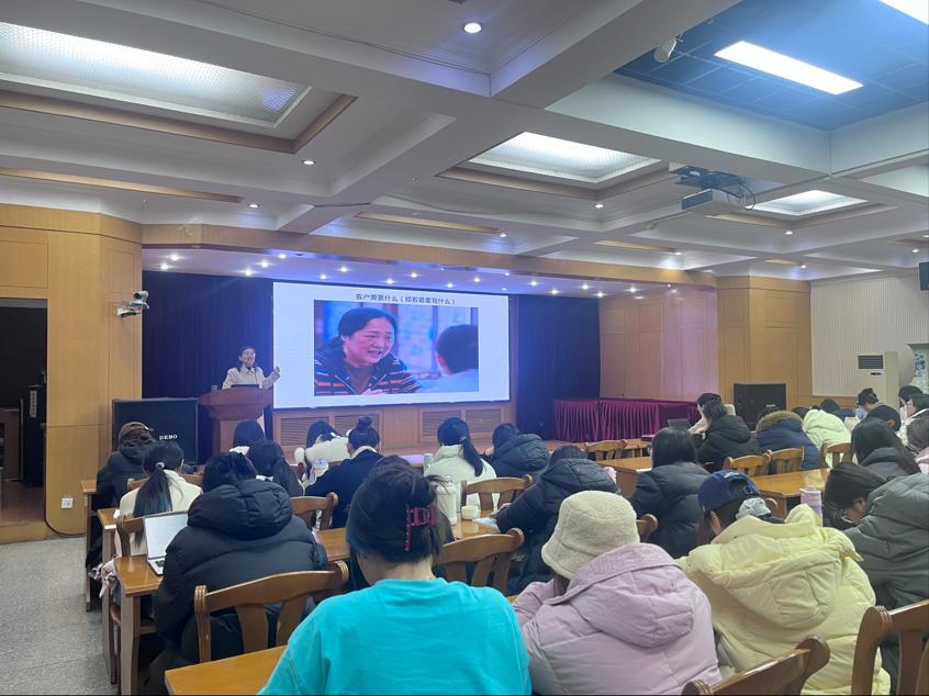 为强化2026届秘书学专业毕业生的服务素养与职业核心能力,助力学子以专业姿态步入职场,12月29日下午,由秘书学教研室副主任李秀娟主讲的服务意识提升专题培训顺利开展,2026届秘书学专业全体毕业生齐聚课堂,沉浸式学习服务领域的核心知识与实践技巧。