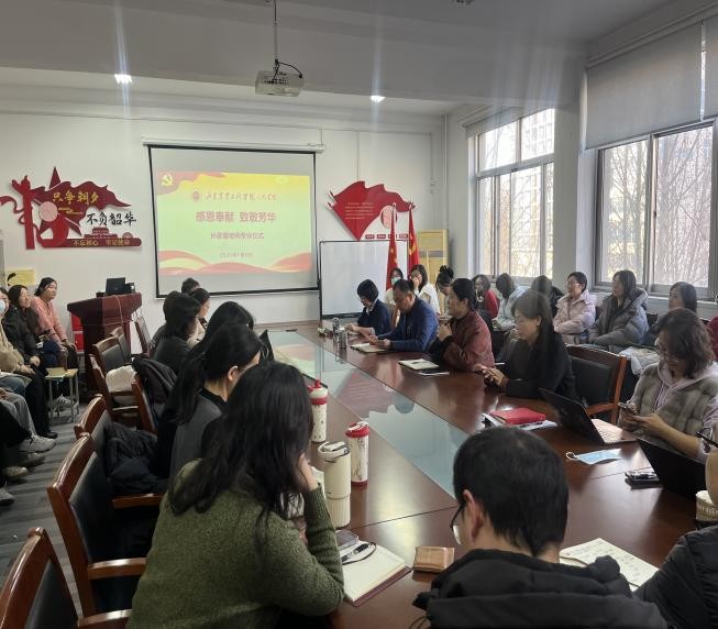 仪式伊始,王书记首先代表学院党委和全体师生,对孙彦娜老师长期以来的默默付出和贡献表示衷心感谢,并回顾了孙老师数十年的职业生涯。随后,院长高千秋发表致辞,深情回顾了孙彦娜老师在校工作的点点滴滴,高度评价了她作为一名一线教师所展现出的专业素养、责任担当与人格魅力,并代表学院全体师生,向孙彦娜老师表达最诚挚的感谢。教师代表纷纷发言,回顾孙老师的工作场景和对自己的帮助,并表达感谢,最后共同祝愿退休生活健康、充实、幸福,开启人生崭新的精彩篇章。