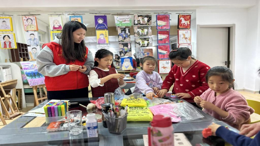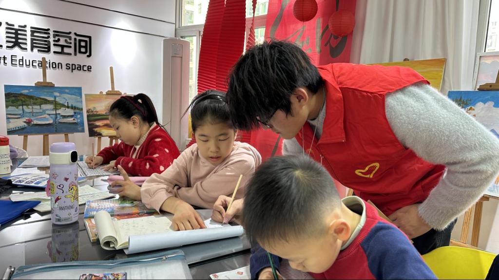 活动依托社区“嵌入式美育空间”,发挥学院文化育人、以美润心的专业优势,共同打造“美育空间”首期公益寒假托管活动。活动以“校社联动+志愿护航”为核心,将课业辅导、趣味陪伴与美育实践深度融合。活动期间,志愿者们为孩子们提供了个性化课业辅导,针对薄弱学科查漏补缺,并穿插趣味益智游戏,让学习张弛有度;在课业辅导期间,会穿插创意绘画、书法、非遗手作等课程,在陪伴中引导孩子们学习知识,感受中华优秀传统文化魅力。志愿者们以真诚与爱心坚守岗位,成为了社区青少年学业上的“小老师”和生活中的“大朋友”,为孩子的假期生活既“解忧”又“增色”,受到了社区高度赞赏。