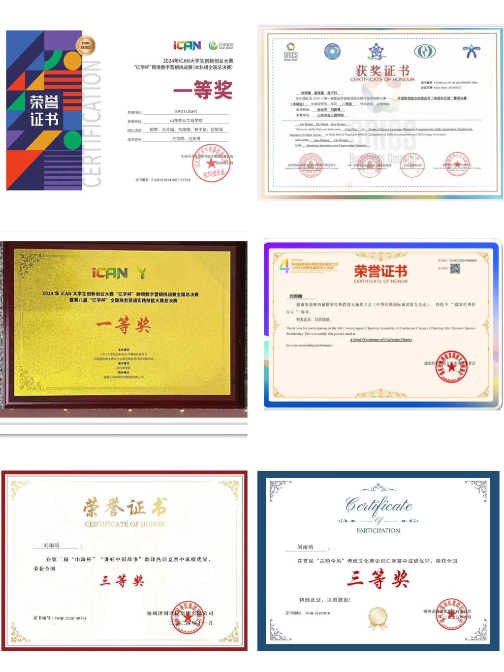 她秉持“以赛促学、以赛提质”的信念,以奋进姿态征战各类学科竞赛与创新创业赛场。从2024年iCAN大学生创新创业大赛全国一等奖、“一带一路”金砖国家技能发展大赛全国一等奖,到4项省级奖项、30余项校院级荣誉,每一份奖项都是她实力的见证,彰显出扎实的专业功底与突出的综合能力。