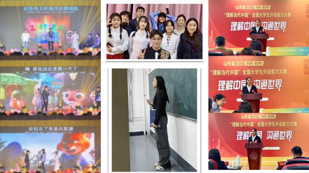 在担任英韩配音社社长期间,她牵头组织了人文学院儒家经典诵读活动、“丝路之声”外语演讲活动和元旦晚会的疯狂动物城英语话剧活动,覆盖师生400余人,为校园文化建设注入活力。同时,她积极投身社会实践与志愿服务,以中国翻译学会会员、青岛旅行社协会英语导游、新东方教育实习助教等多重身份,在实践中锤炼本领、传递价值,用青春力量书写责任与担当。